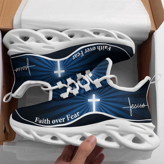 Max Soul Shoes, Jesus Faith Over Fear Running Sneakers Blue Max Soul Shoes, Jesus Christ Shoes