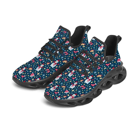 Snowman Christmas Print Pattern Black Max Soul Shoes, Christmas Sneakers, Christmas Shoes, Christmas Clunky Sneaker