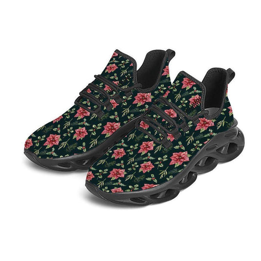 Poinsettia Cute Christmas Print Pattern Black Max Soul Shoes, Christmas Sneakers, Christmas Shoes, Christmas Clunky Sneaker
