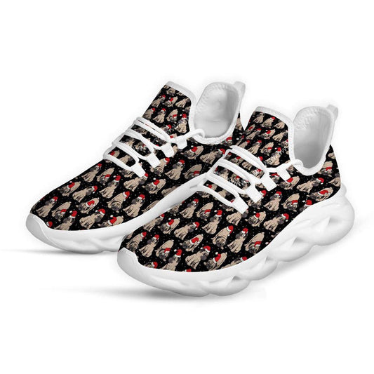 Pug Christmas Santa Print Pattern White Max Soul Shoes, Christmas Sneakers, Christmas Shoes, Christmas Clunky Sneaker