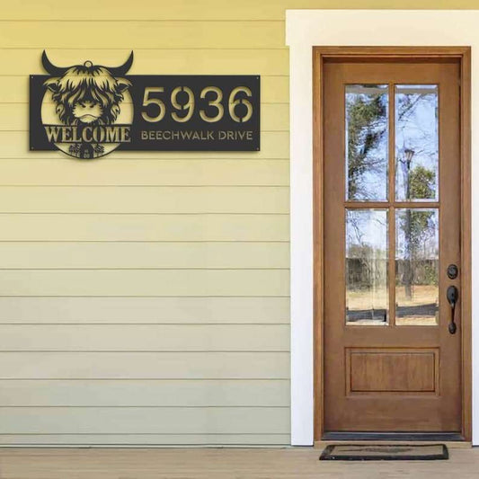Farm Metal Sign, Personalized Cow Sunflower Address Sign Highland Cattle House Number Plaque Custom Metal Sign