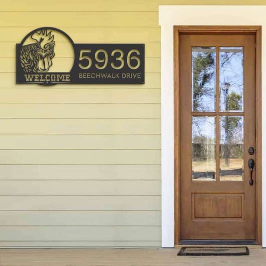 Farm Metal Sign, Personalized Chicken Rooster Farm Animal Ranch Address Sign House Number Plaque Custom Metal Sign