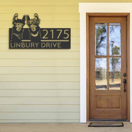 Farm Metal Sign, Personalized Couple Llama Address Sign House Number Plaque Custom Metal Sign