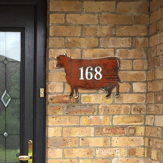 Farm Metal Sign, Personalized Cow House Number Sign, Metal Address Plaque Farm House Decor