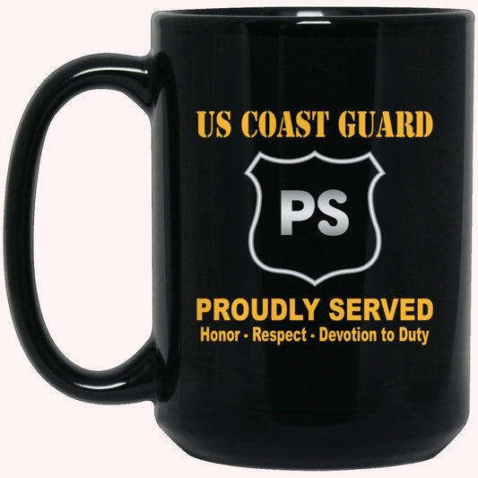 Veterans Mug, USCG PORT SECURITY SPECIALIST PS Logo Proudly Served Black Mug
