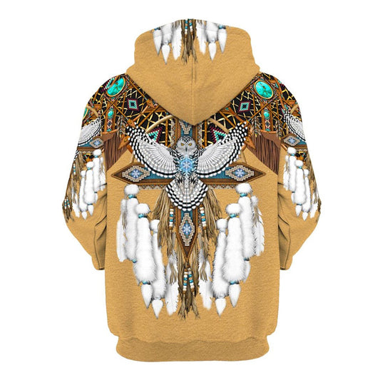 Native American White Owl All Over Print Hoodie, Native American Hoodie, 3D Native American Hoodie