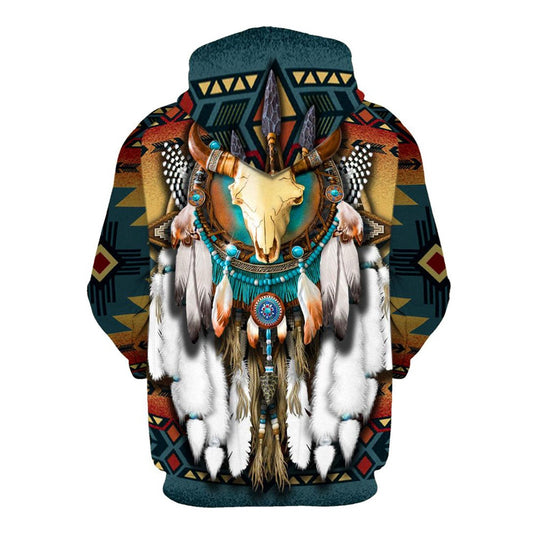 Native American Trail Of Bison Skull All Over Print Hoodie, Native American Hoodie, 3D Native American Hoodie