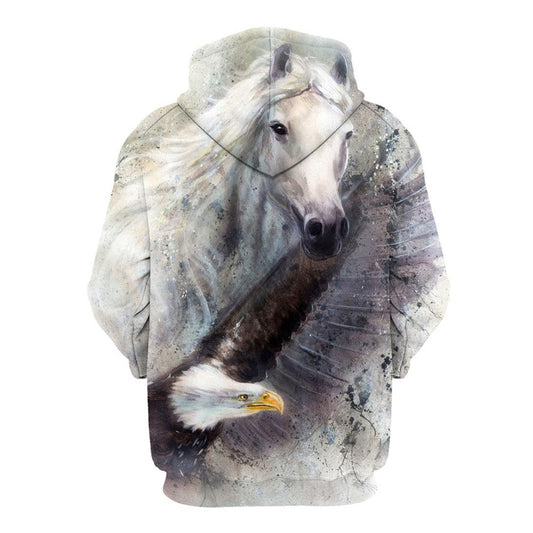 Native American White Horse And Eagle All Over Print Hoodie, Native American Hoodie, 3D Native American Hoodie