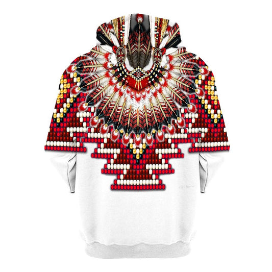 Native American White Red Pattern All Over Print Hoodie, Native American Hoodie, 3D Native American Hoodie