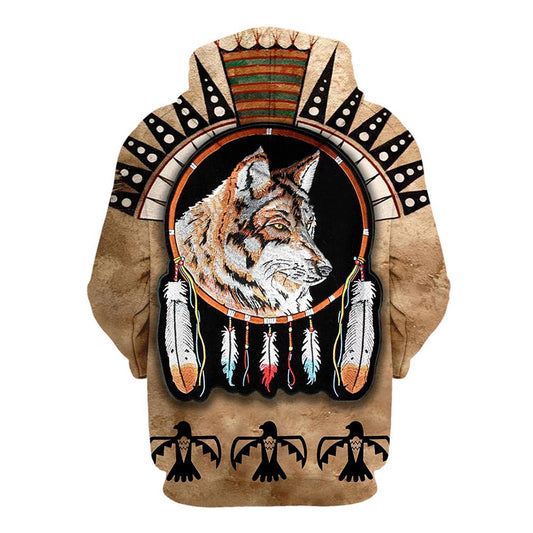 Native American Three Wolves Dreamcatcher All Over Print Hoodie, Native American Hoodie, 3D Native American Hoodie