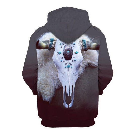 Native American Skull All Over Print Hoodie, Native American Hoodie, 3D Native American Hoodie