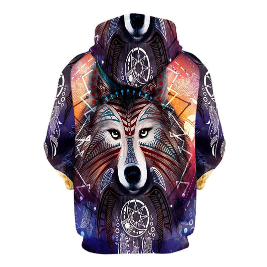 Native American Purple Wolf All Over Print Hoodie, Native American Hoodie, 3D Native American Hoodie
