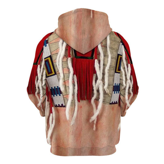 Native American Red Blue Dance Of Indian Chief All Over Print Hoodie, Native American Hoodie, 3D Native American Hoodie