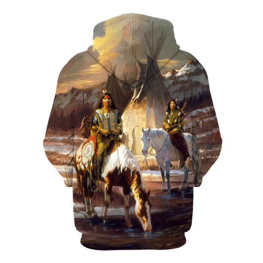 Native American Riding Horse All Over Print Hoodie, Native American Hoodie, 3D Native American Hoodie