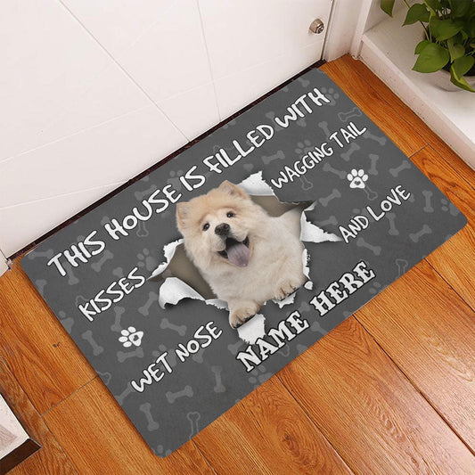 Personalized Welcome Doormat, Chow chow dog pet lover pawprint grey Welcome Doormat, Custom Name Pets Home Decor Door Mat