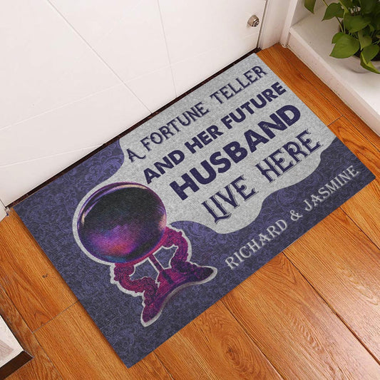 Personalized Welcome Doormat, Couple Witch A Fortune Teller Live Here Welcome Doormat, Custom Name Pets Home Decor Door Mat