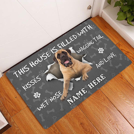 Personalized Welcome Doormat, English Mastiff dog lover pawprint grey Welcome Doormat, Custom Name Pets Home Decor Door Mat