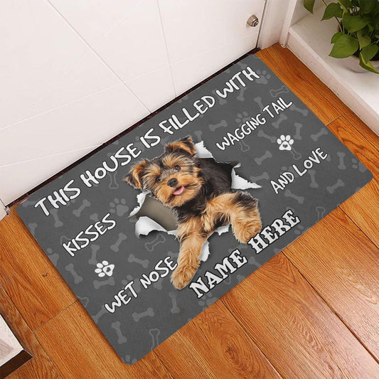 Personalized Yorkshire Terrier Welcome Doormat, Yorkshire dog pet lover pawprint grey Welcome Doormat, Custom Name Pets Home Decor Door Mat
