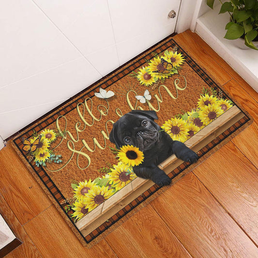 Pug Welcome Doormat, Pug Hello Sunflower Floral For Dog Puppy Lover Black Welcome Doormat, Pets Home Decor Door Mat