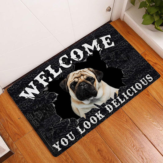 Pug Welcome Doormat, Funny Pug Dog Welcome You Look Delicious Gift For Dog Lover Welcome Doormat, Pets Home Decor Door Mat