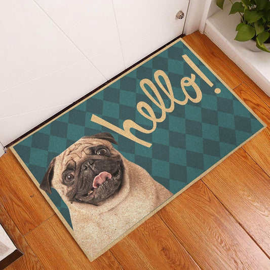 Pug Welcome Doormat, Funny Pug Hello Unique Gift For Dog Lover Viridian Green Welcome Doormat, Pets Home Decor Door Mat
