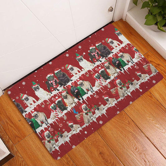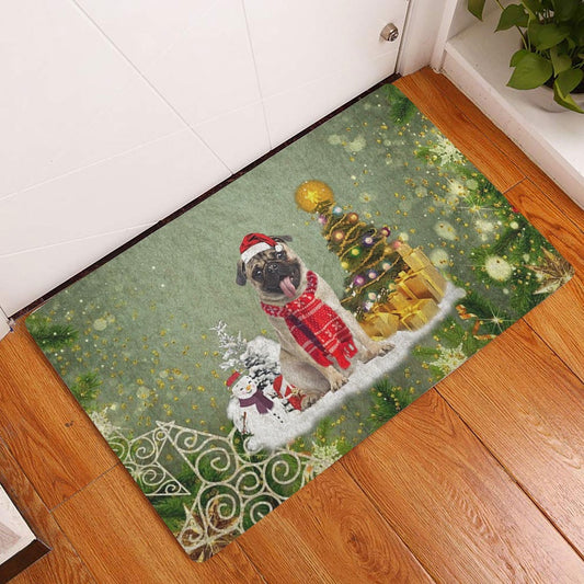 Pug Welcome Doormat, Pug Dog Merry Christmas Snow Christmas Tree Xmas Holidays Welcome Doormat, Pets Home Decor Door Mat