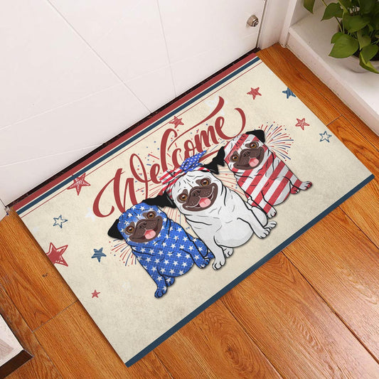 Pug Welcome Doormat, Pug God Bless America Patriotic 4th of July Independence Day Welcome Doormat, Pets Home Decor Door Mat