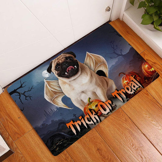Pug Welcome Doormat, Pug Trick Or Treat Boo Happy Halloween Moon Night Pumpkin Funny Welcome Doormat, Pets Home Decor Door Mat