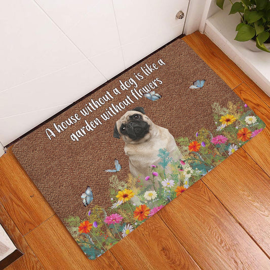 Pug Welcome Doormat, Pug a house without a dog is like a garden without flowers Welcome Doormat, Pets Home Decor Door Mat