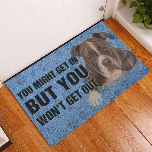 Pitbull Welcome Doormat, Pitbull Dog You Might Get In But You Won't Get Out Welcome Doormat, Pets Home Decor Door Mat