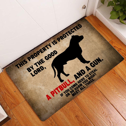 Pitbull Welcome Doormat, This Property is Protected by The Good Lord, A Pitbull Dog Welcome Doormat, Pets Home Decor Door Mat
