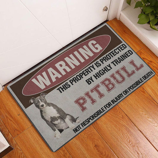 Pitbull Welcome Doormat, Warning This Property is Protected by a Highly Trained Pitbull Welcome Doormat, Pets Home Decor Door Mat