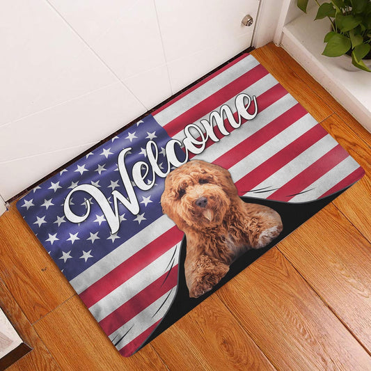 Poodle Welcome Doormat, Funny Poodle Dog Welcome American Flag USA Patriotic Welcome Doormat, Pets Home Decor Door Mat