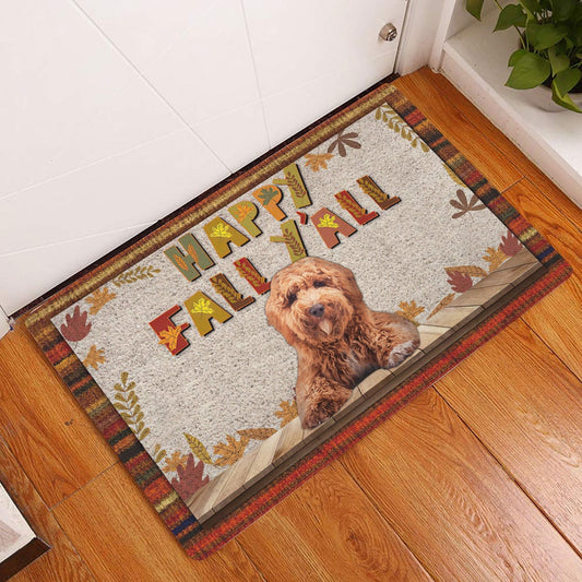 Poodle Welcome Doormat, Poodle Dog Happy Fall Y'all Pumpkin Spice Maple Leaf Welcome Doormat, Pets Home Decor Door Mat