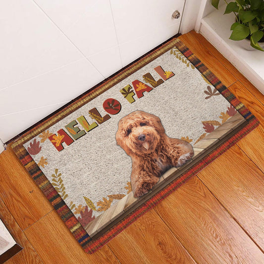 Poodle Welcome Doormat, Poodle Dog Hello Fall Pumpkin Spice Maple Leaf Autumn Welcome Doormat, Pets Home Decor Door Mat