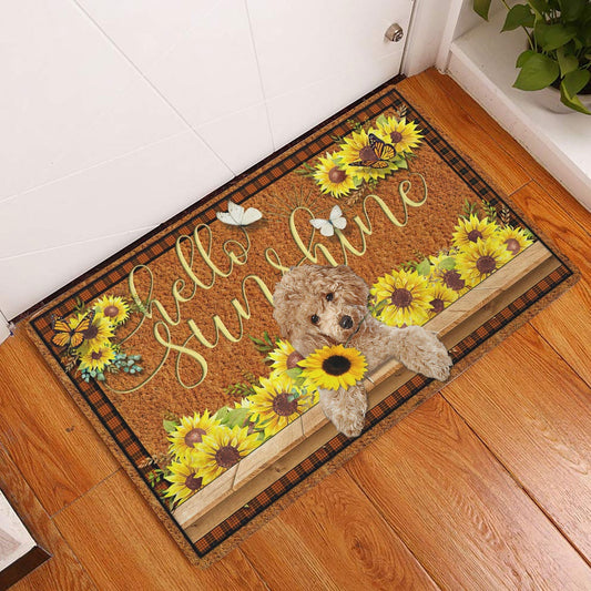 Poodle Welcome Doormat, Poodle Dog Hello Sunflower Butterfly Welcome Doormat, Pets Home Decor Door Mat
