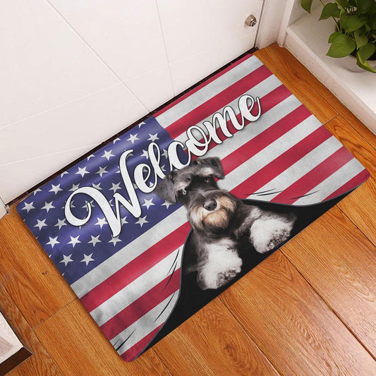 Miniature Schnauzer Welcome Doormat, Funny Miniature Schnauzer Welcome American Flag USA Patriotic Welcome Doormat, Pets Home Decor Door Mat