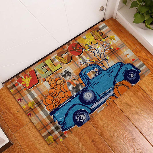 Miniature Schnauzer Welcome Doormat, Miniature Schnauzer Pumpkin Truck Autumn Happy Fall Y'all Welcome Doormat, Pets Home Decor Door Mat
