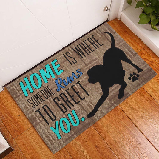 Pitbull Welcome Doormat, Home Is Where Someone Runs To Greet You Pitbull Terrier Dog Welcome Doormat, Pets Home Decor Door Mat