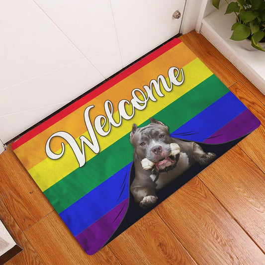 Pitbull Welcome Doormat, LGBT Pitbull Dog Welcome Pride Rainbow Flag Welcome Doormat, Pets Home Decor Door Mat