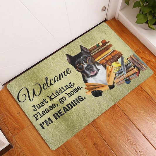 Pitbull Welcome Doormat, Pitbull Dog And Book Please Go Home I'm Reading Welcome Doormat, Pets Home Decor Door Mat