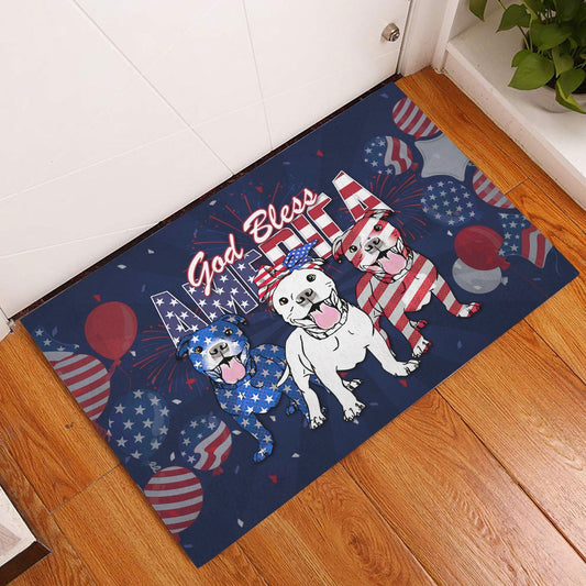 Pitbull Welcome Doormat, Pitbull Dog God Bless America Patriotic 4th of July Independence Welcome Doormat, Pets Home Decor Door Mat