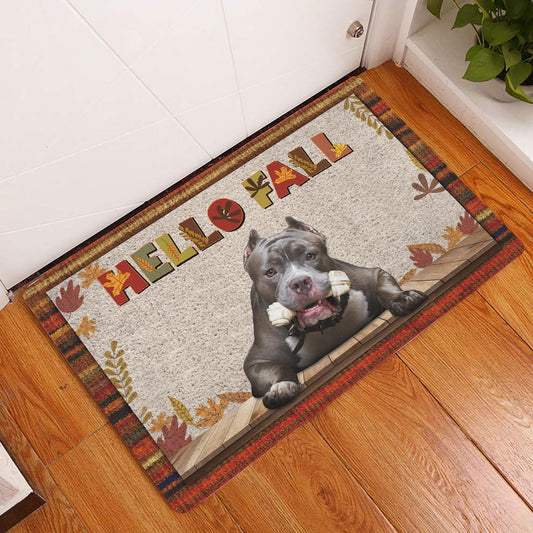 Pitbull Welcome Doormat, Pitbull Dog Hello Fall Pumpkin Spice Maple Leaf Autumn Welcome Doormat, Pets Home Decor Door Mat