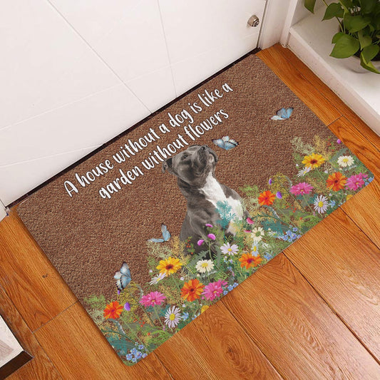 Pitbull Welcome Doormat, Pitbull a house without a dog is like a garden without flowers Welcome Doormat, Pets Home Decor Door Mat