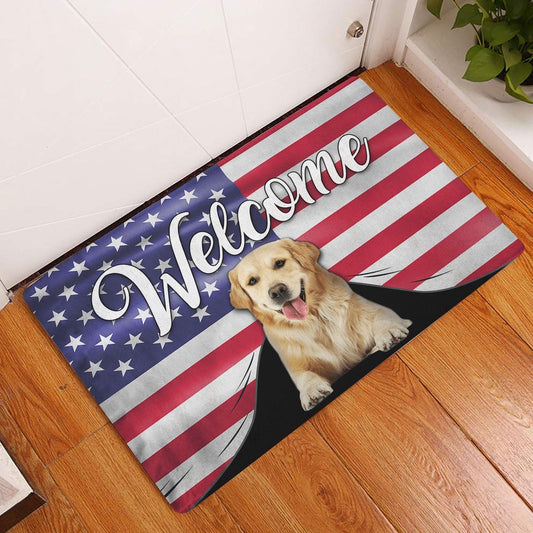 Golden Retriever Welcome Doormat, Funny Golden Retriever Dog Welcome American Flag USA Patriotic Welcome Doormat, Pets Home Decor Door Mat