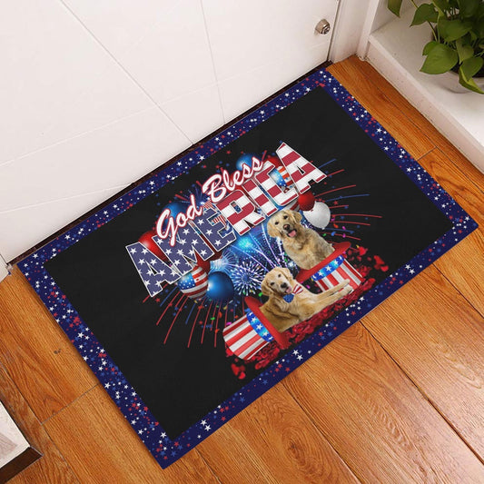 Golden Retriever Welcome Doormat, Golden Retriever God Bless America Patriotic 4th of July Welcome Doormat, Pets Home Decor Door Mat