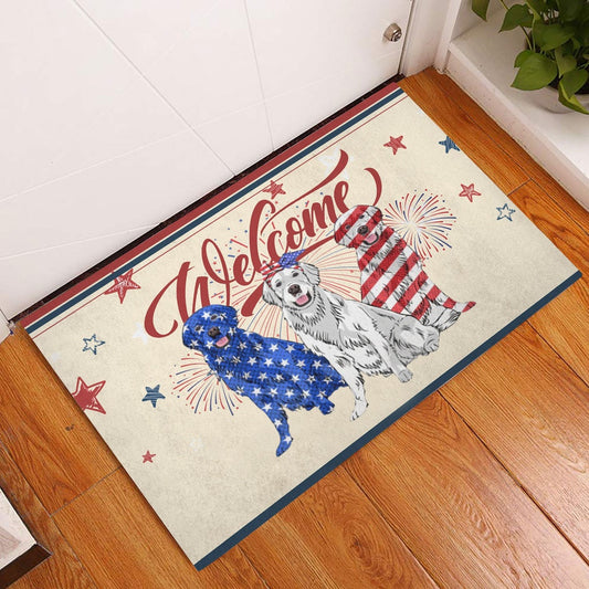 Golden Retriever Welcome Doormat, Golden Retriever Patriotic American 4Th of July Independence Day Welcome Doormat, Pets Home Decor Door Mat