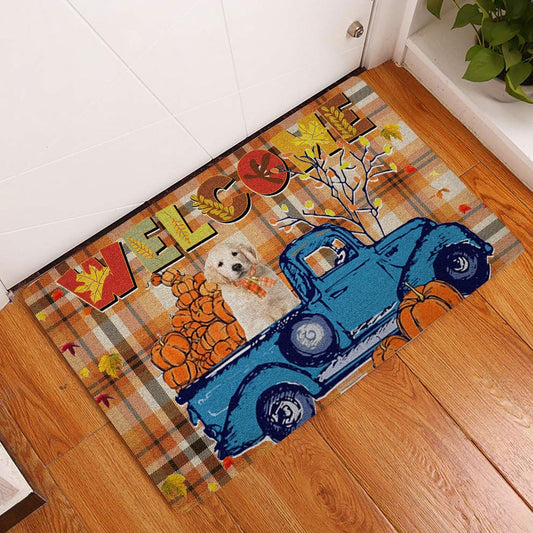 Golden Retriever Welcome Doormat, Golden Retriever Pumpkin Truck Autumn Happy Fall Y'all Welcome Doormat, Pets Home Decor Door Mat