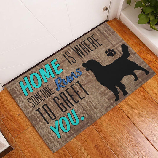Golden Retriever Welcome Doormat, Home Is Where Someone Runs To Greet You Golden Retriever Dog Welcome Doormat, Pets Home Decor Door Mat
