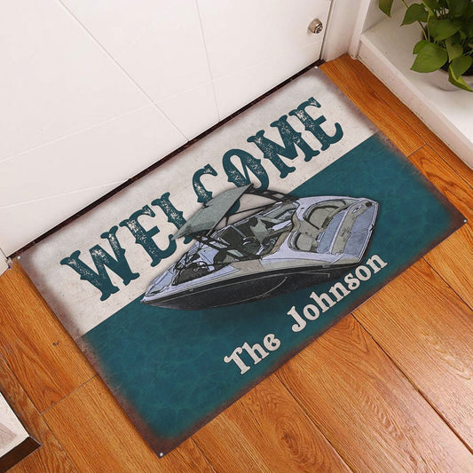Personalized Pontoon Welcome Doormat, Jet Boats Pontoons Lake House Boat Welcome Doormat, Custom Name Pets Home Decor Door Mat